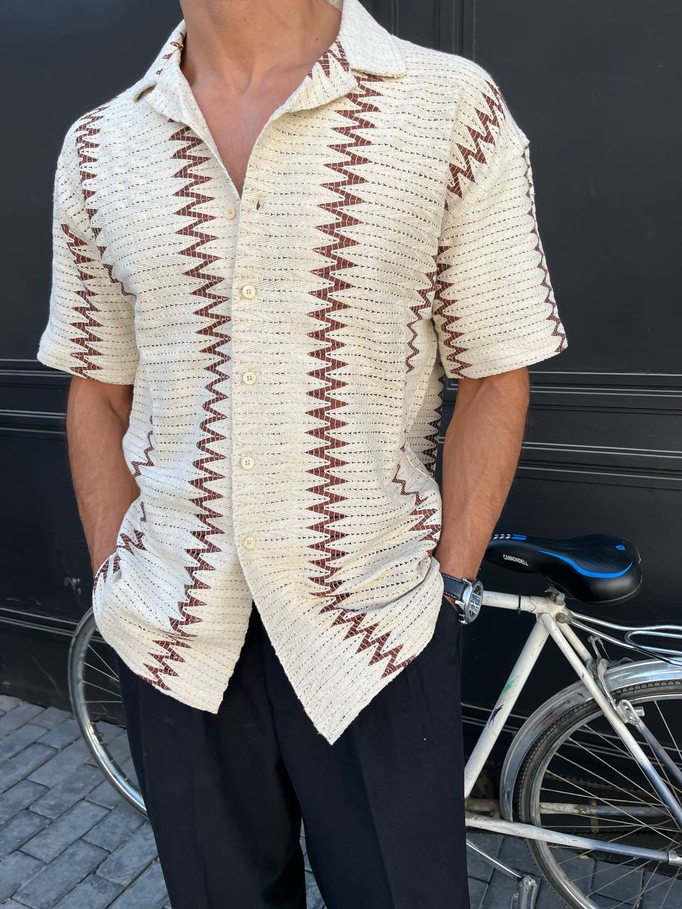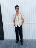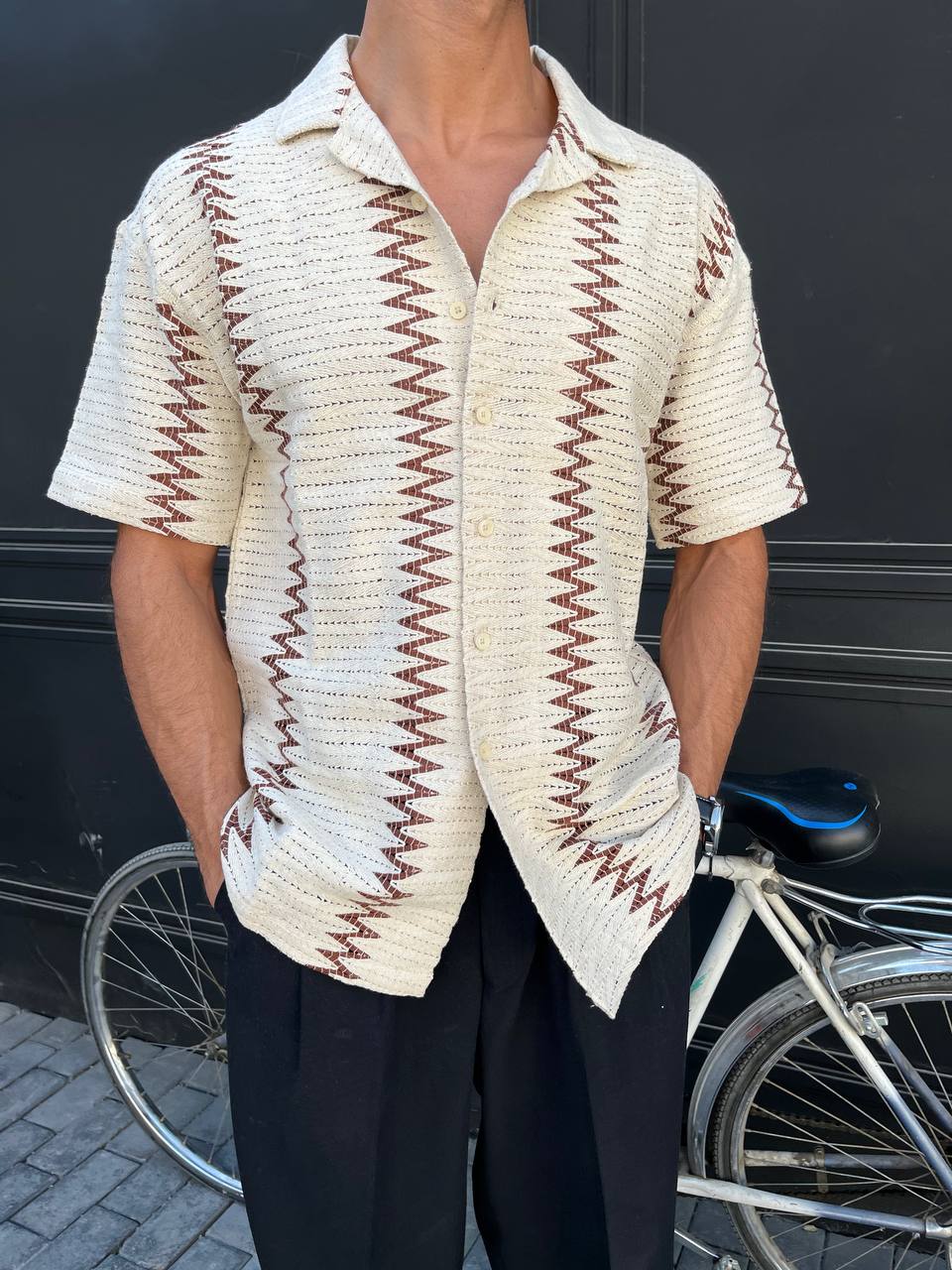 پیراهن قلاببافی مردانه با یقه مراکشی و طراحی خاص، ترکیبی از اصالت و مدرنیته را در استایل مردانه به نمایش میگذارد.