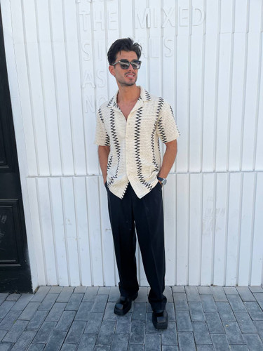 پیراهن قلاب‌ بافی مردانه یقه مراکشی مدل خاص